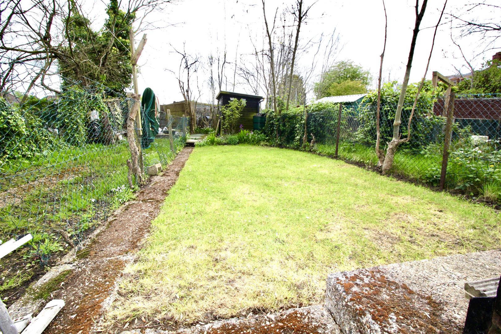 Mainly lawned area with pathway leading to hardstanding for timber shed.