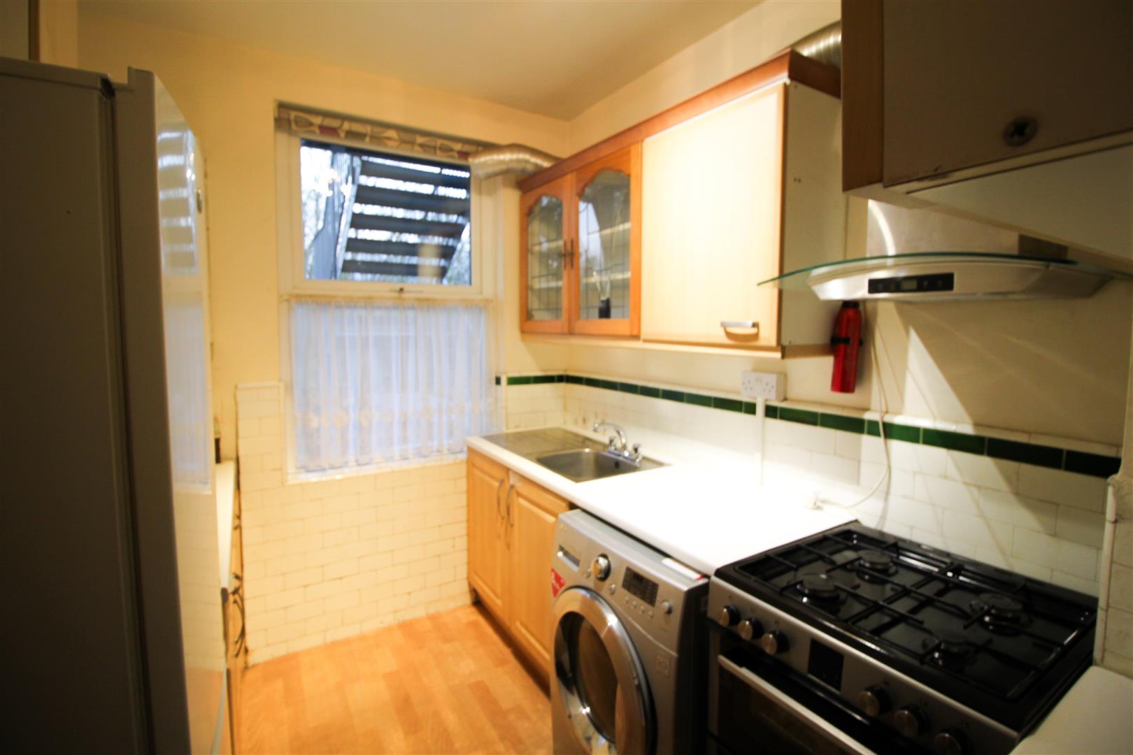Eye and base level storage units, single drainer stainless steel sink unit with mixer taps, space and plumbing for washing machine, space for gas hob with overhead extractor hood, power points, half tiled walls, double glazed window to front.
