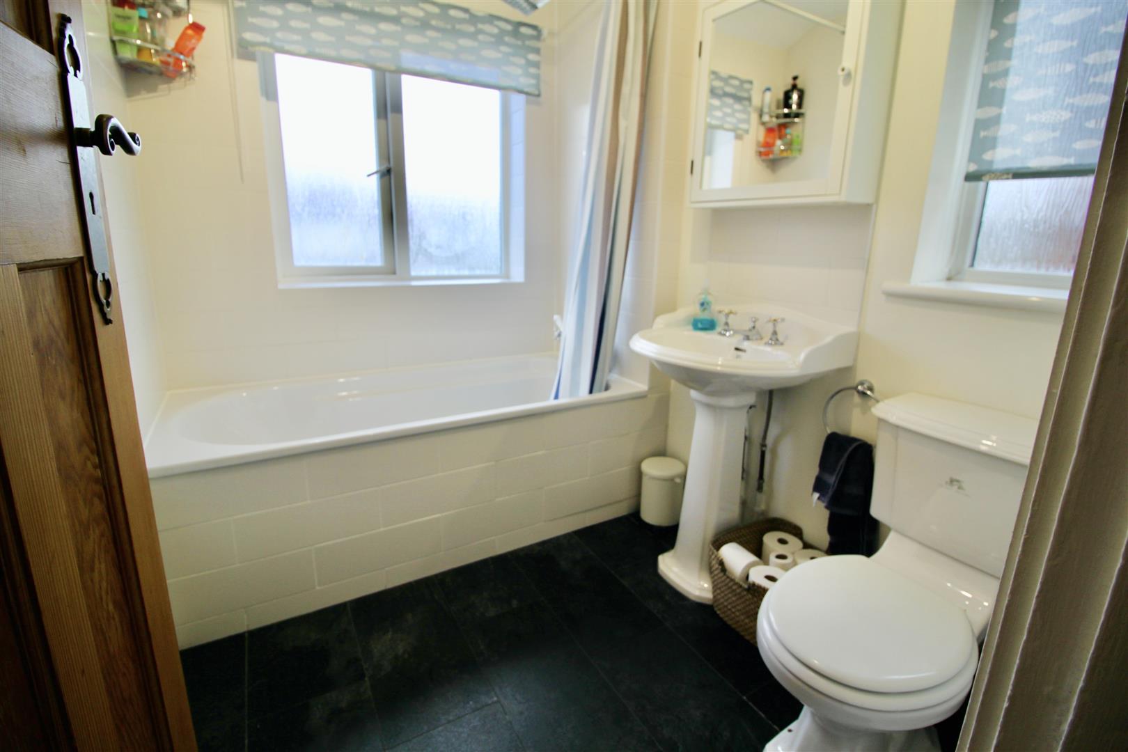Panel enclosed bath, low level wc, wash hand basin, fully tiled walls, double glazed window rear and side