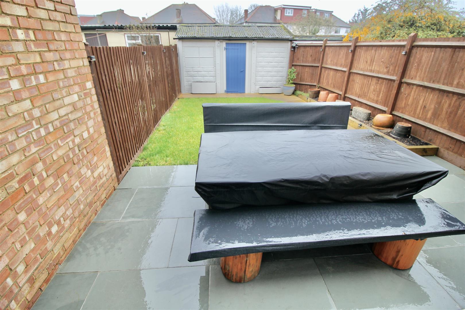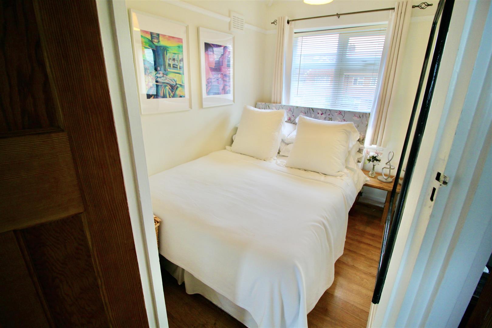 Well stocked garden enclosed by brick wall, side shared drive to side leading to
